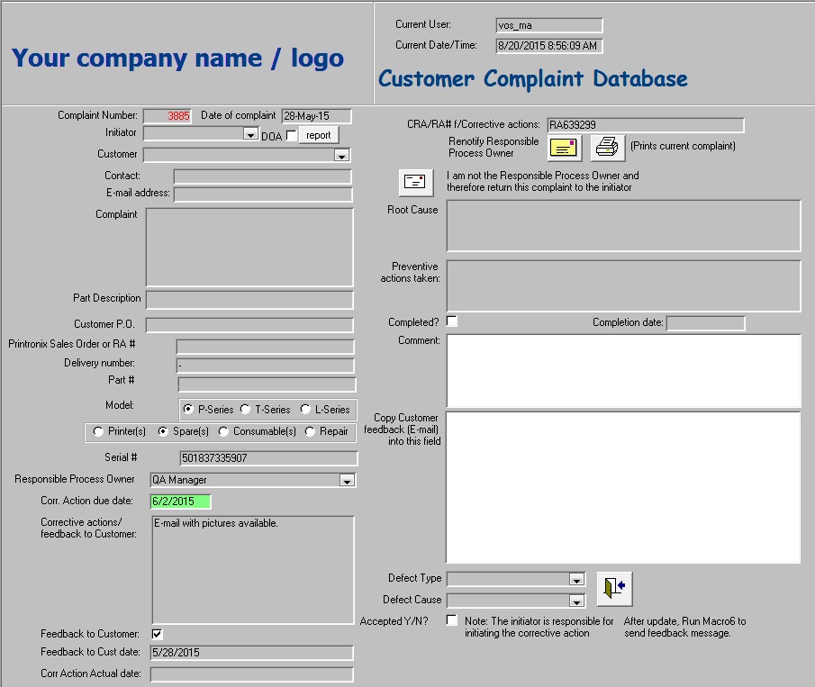 - Customer complaint reports
