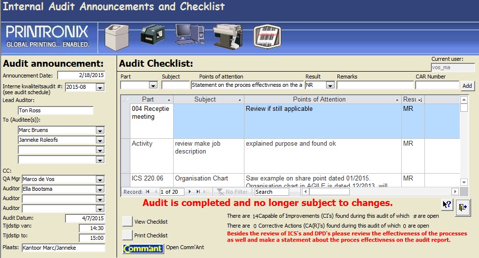 - Auditaankondigingen (per E-mail) inclusief audit checklists